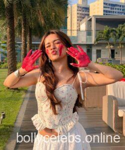 Her body language throughout the frames radiates confidence and comfort. Whether she is playfully showing her colored palms or smiling softly in a close-up shot, she carries the look with effortless grace. The balance between festive fun and refined styling showcases her evolving fashion sensibility.